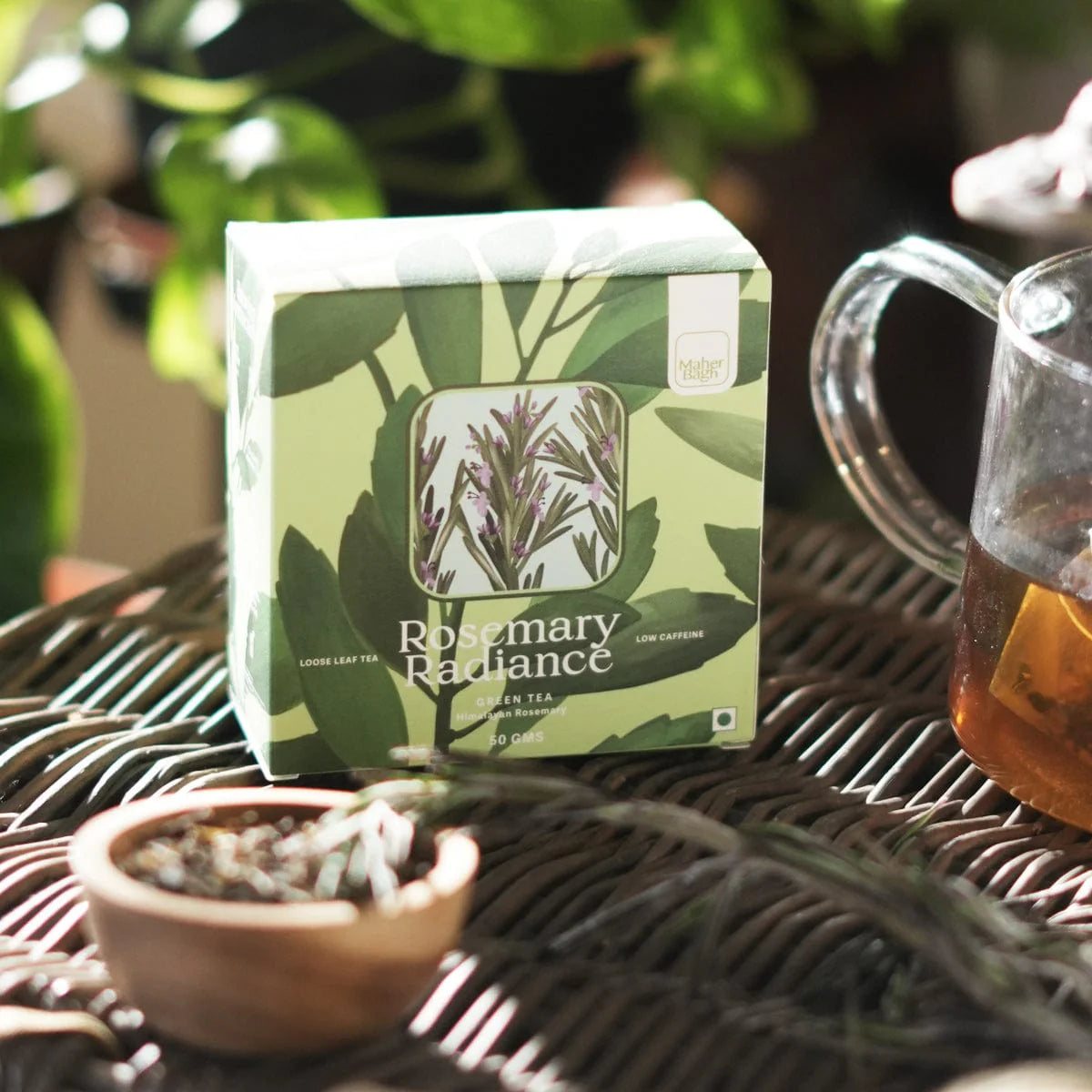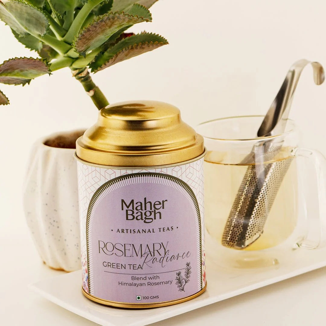 Embrace the rejuvenating essence of Rosemary Radiance Green Tea. Our low-caffeine, green tea infused with delicate rosemary offers a revitalizing and flavorful experience. Elevate your tea ritual with this exquisite infusion. Unveil the perfect marriage of green tea and the herbal charm of rosemary in every cup.