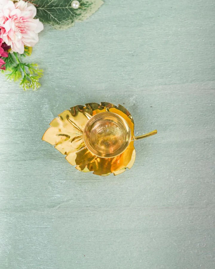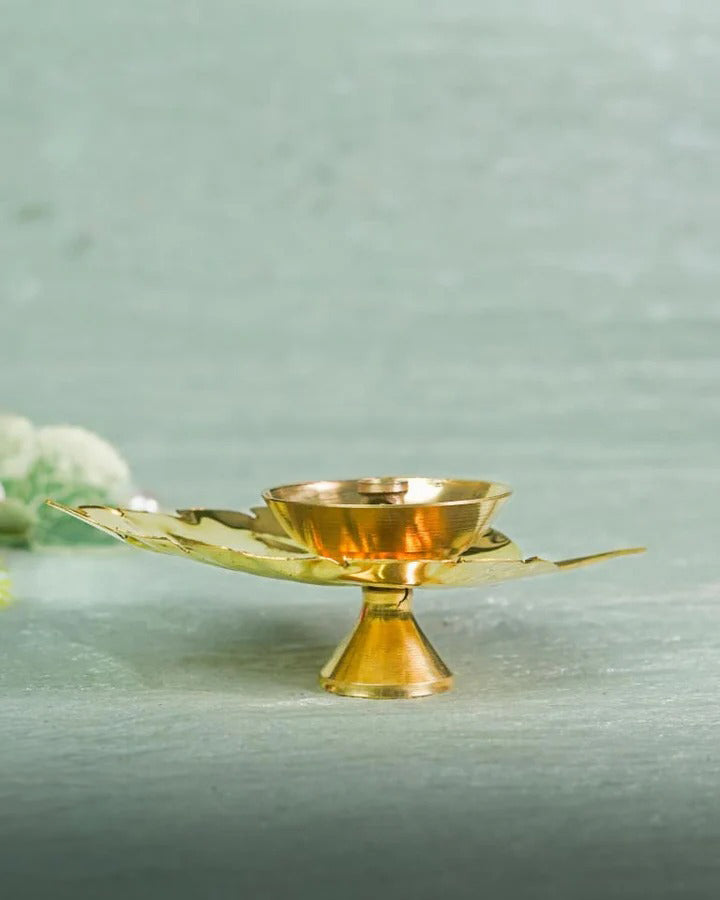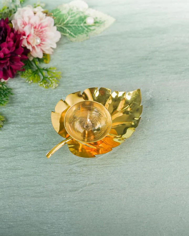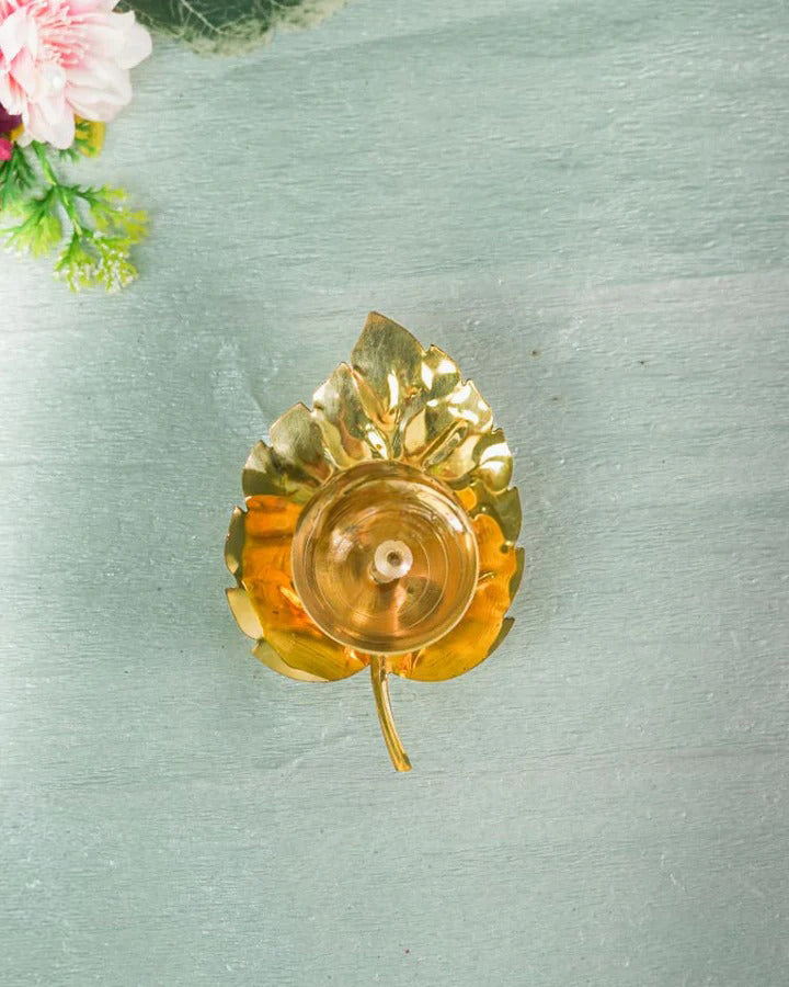 - A beautiful pipal leaf shaped diya is made of brass.
