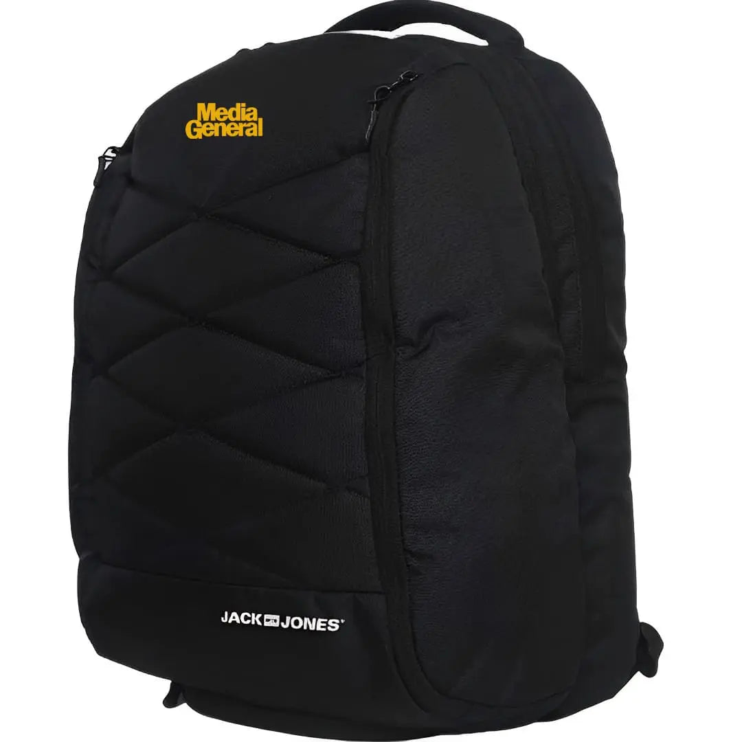 Jack & Jones Jeff Backapck Pro - 22 Ltrs - MRP Rs 3999. * 100% Polyester, water resistant. * Bottle holder and shoe compartment * Umbrella holder, key holder, Lock belt * 17 inch laptop compatible * Capacity : 22L Logo will be printed