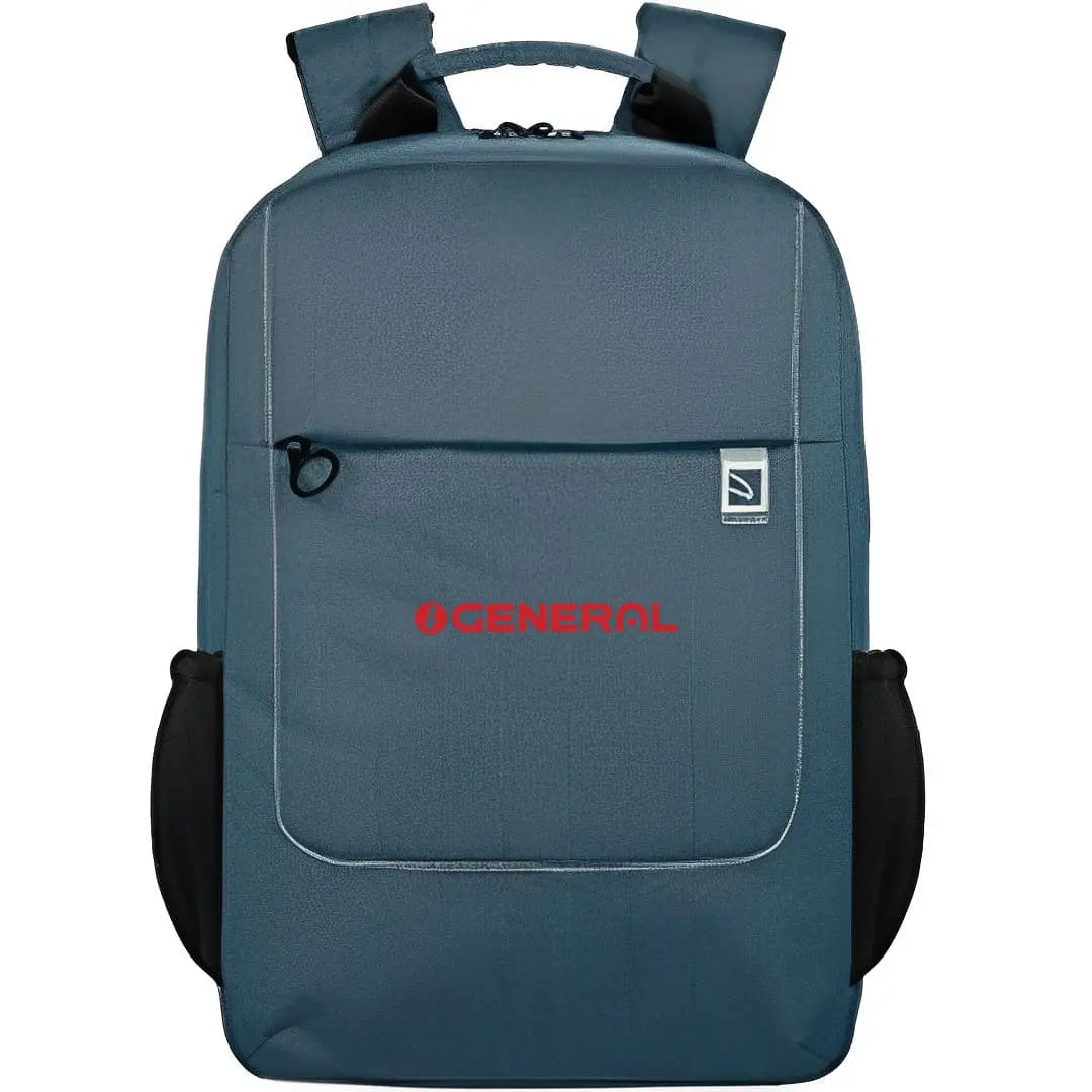 Loop Laptop backpack (BKLOOP16 - MRP Rs 4190) with logo. * Laptop 15.6" & MacBook Pro 16" * 2 tone fabric * front pocket with zip closure * Ergonomic Padded back panel & adjustable shoulder straps * Trolley strap * Dual Side bottle holder * External organizer pocket on the front * Inside pocket for devices Logo will be printed