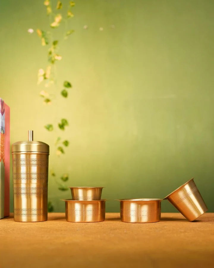 - A Classy Traditional Coffee Filter with Dabara Set made of Brass.