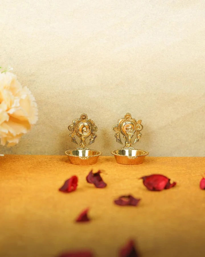 - Each diya is crafted from high-quality brass, featuring intricate details and a smooth finish.