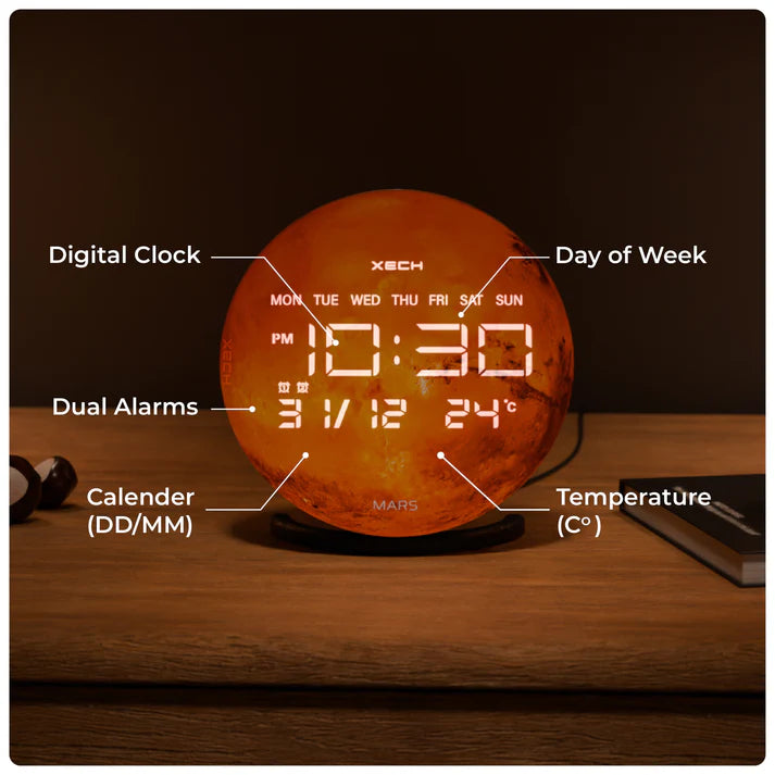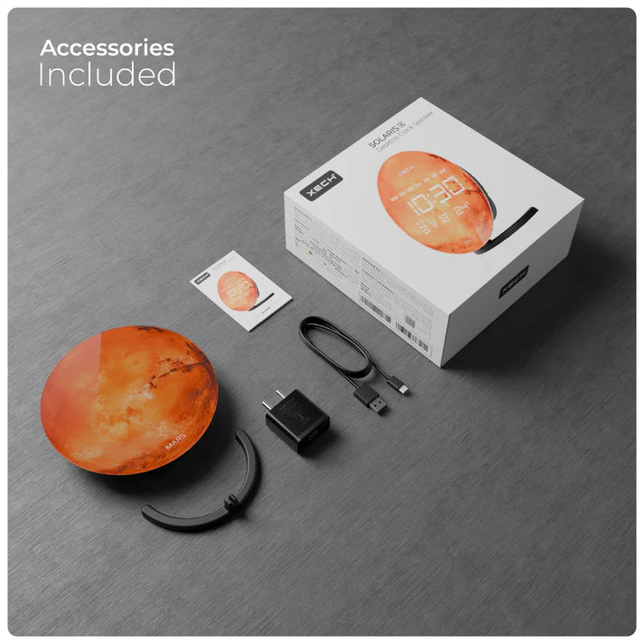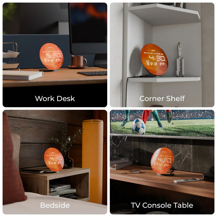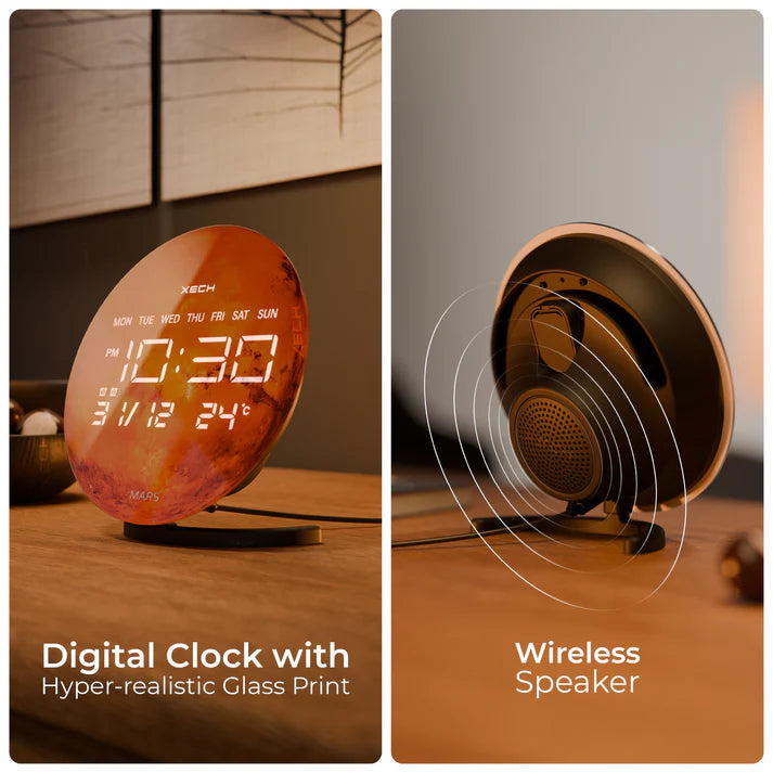 Explore time and sound like never before with XECH Solaris X. Featuring hyper-realistic glass prints, this sleek device brings high-fidelity sound and effortless time-syncing to your space. Crafted in India, Solaris X combines style, precision, and innovation—perfect for those who want more from time. Its elegant design and cosmic imagery make it a stunning addition to any desk, adding both beauty and function to your workspace.