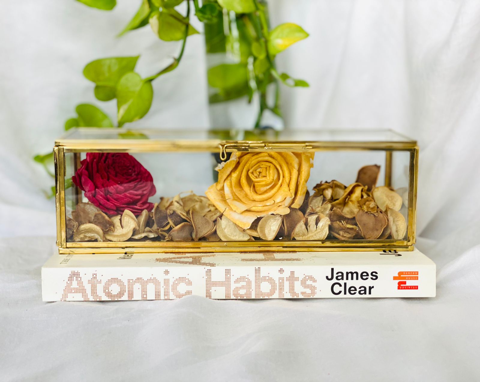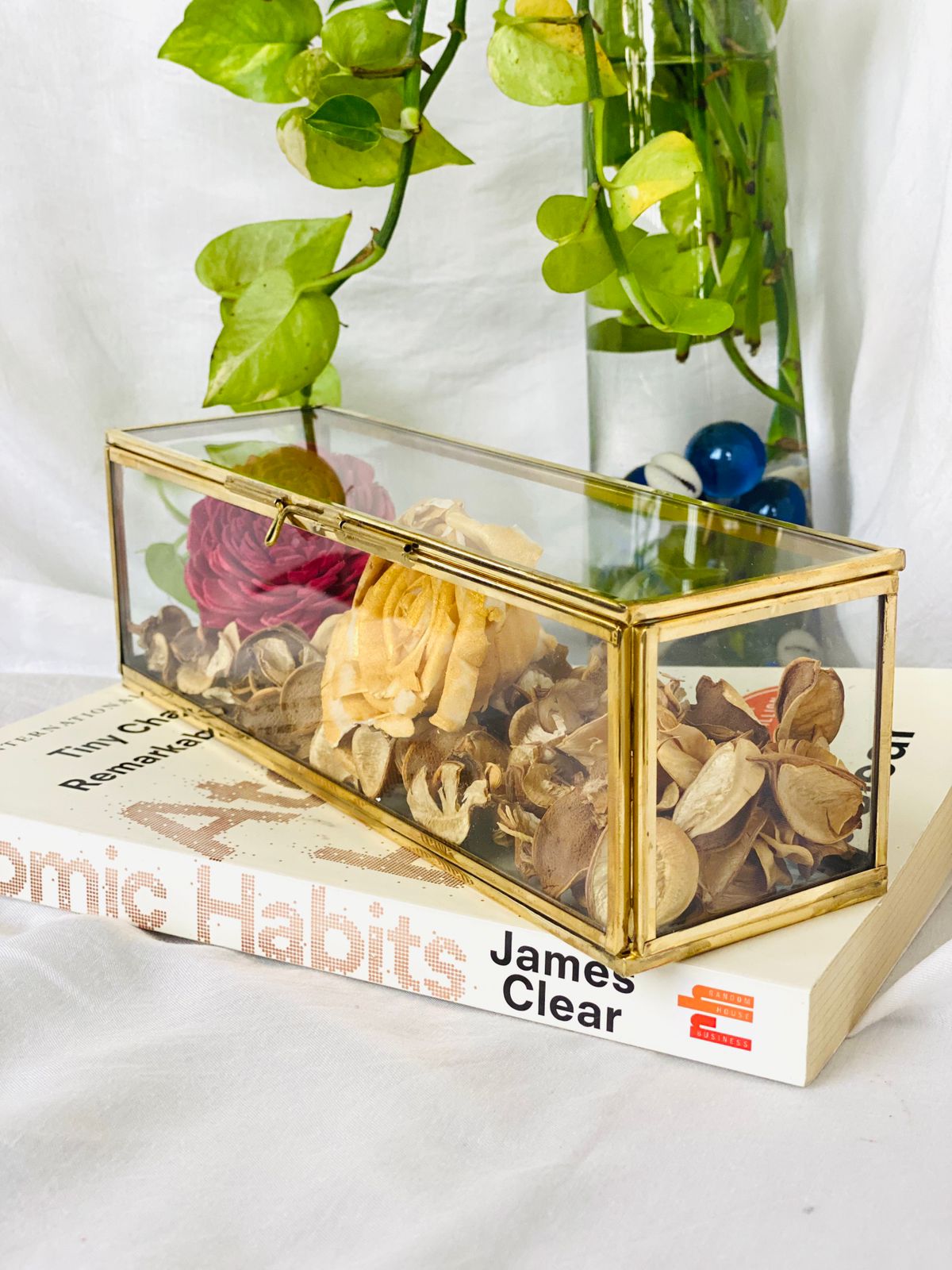 •Class and Quality: Clear glass surrounded by golden brass. Clear glass display boxes perfect to use as a wedding box and a gift box in your first home together. Glass will air-slak and no color fading problem. Size: 8x3x3 inches /20x6x7 cm