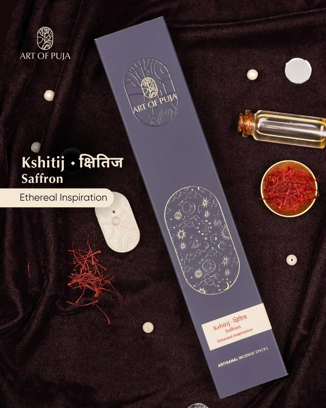 Kshitij, saffron-infused artisanal incense sticks capture the essence of dawn, where the sky meets the earth in a breathtaking fusion of colors. As the rich, warm notes of saffron fill your space, embrace optimism and vitality. Keeping ancient traditions in mind, these incense sticks offer a relaxing and spiritual experience. Let the enchanting aroma of saffron calm your mind and help you connect to the higher power. Discover the magic of Kshitij and let its radiant energy illuminate your world.