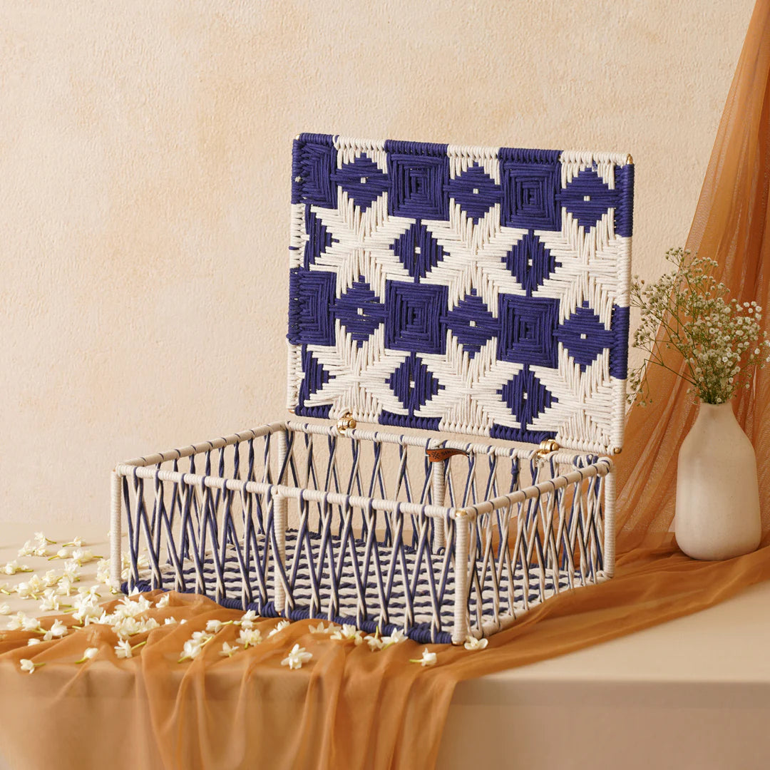 Crafted by Sirohi’s skilled women artisans, this eco-friendly box features intricate macramé work that blends softness and sophistication. Perfect for festive hampers, wedding favors, or thoughtful presents, it’s a unique and reusable alternative to traditional packaging made with love and sustainability in mind.